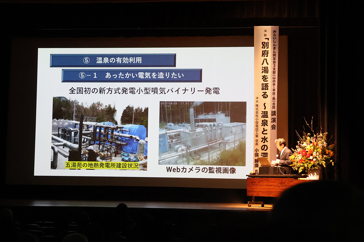 別府が日本における「地熱発電の発祥の地」であること、自ら取り組んだ地熱バイナリー発電事業、これからの地熱発電に対する熱い思いなどを聴き、感化された聴講者も多かったようです。