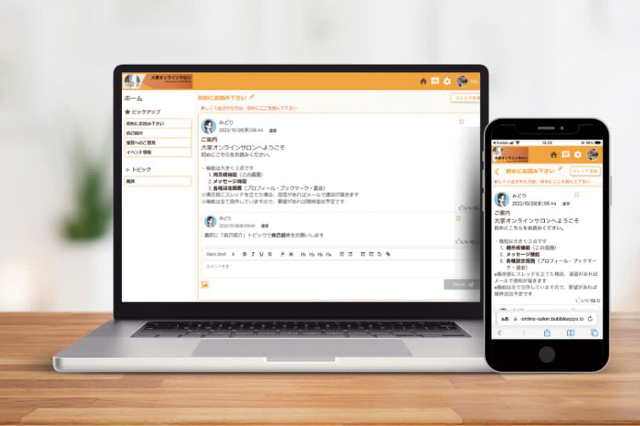 同社が最初に手がけた案件は、『九州大家の会』のオンラインサロン構築です。自らも個人事業主として大家の経験を持つ中山代表ですが、それまでFacebookで行っていた会員同士のコミュニケーション機能を使いやすくし、会員承認機能や自動会費決済機能を実現させました。