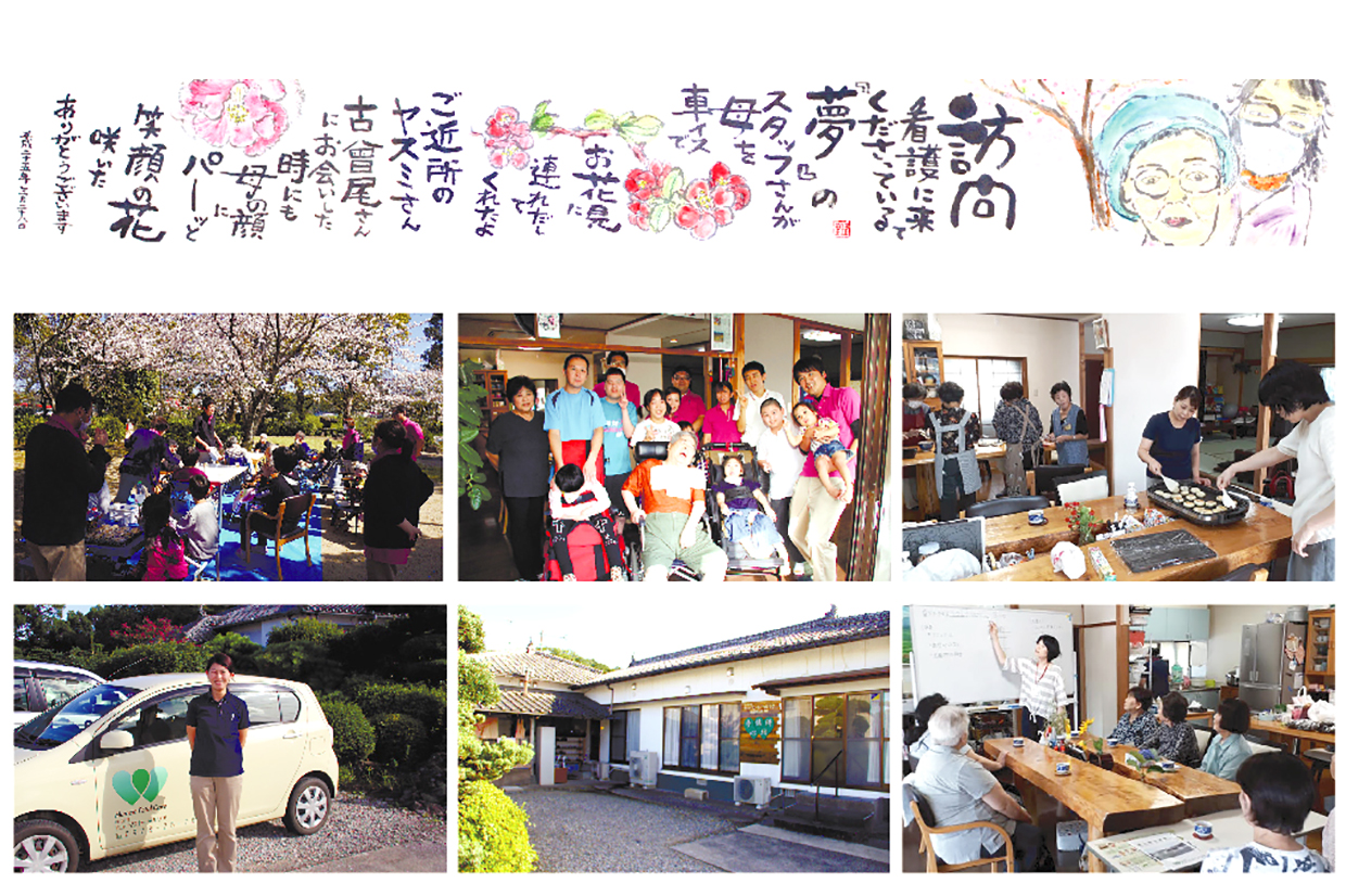 迫田社長が掲げた企業理念は「あなたの居場所であなたらしく」。そこには、病気や障がいがあっても、自分の居場所で生活したいという想いを看護・介護の側面からサポートするという決意が込められています。訪問看護ステーション「夢」からスタートした同社ですが、「利用者が安心して暮らすためには、いろんな事ができる会社にしたい」と、今では「ヘルパーステーション 心」、「家事代行サービス 結」、「居宅支援事業所 絆」、「共生型デイサービス 懐」と事業を拡大。まさしく社名のとおり「ヒューマン・トータルケア」を、そのまま体現した企業となっています。