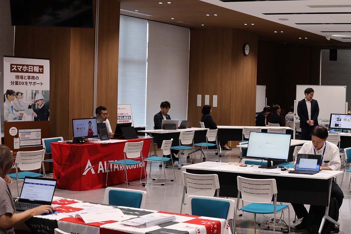 DX合同展示会では「法令対応」「人材確保」「働き方改革」「業績拡大」等をテーマにした企業ブースが出展され、最新鋭のDXツールの提案が行われていました。